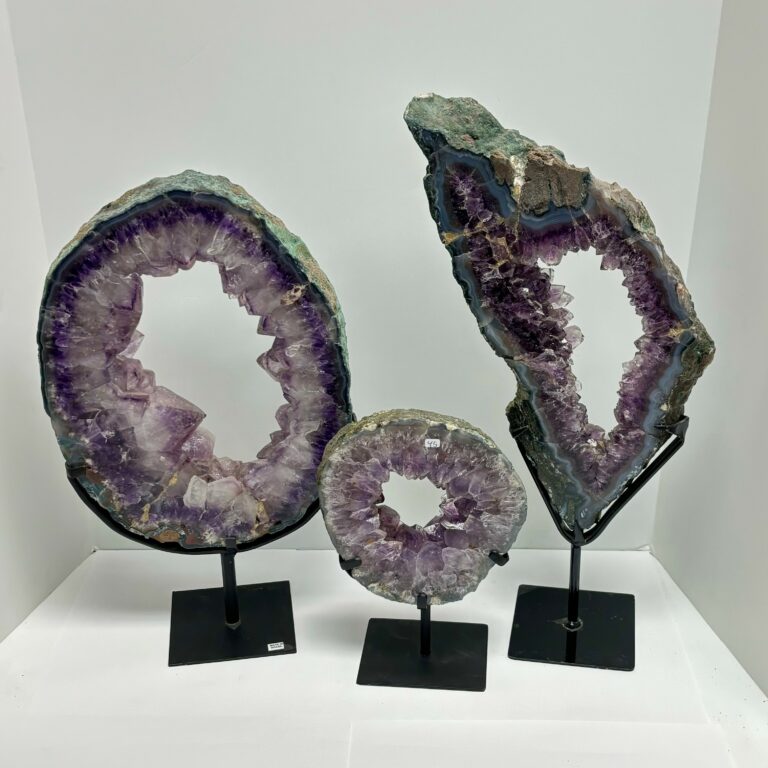 Angel Aura Amethyst Clusters on Metal Stand