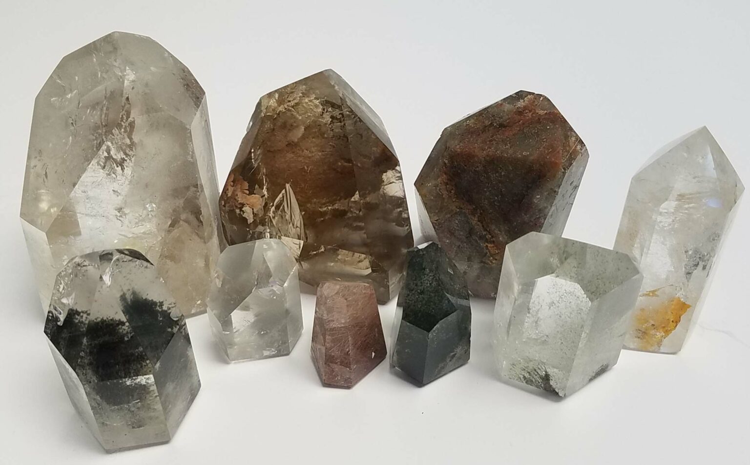 Included Quartz Crystals are beautiful Clear Quartz points with various mineral inclusions. These eye catching crystals have inclusions that vary from bright white to deep red to raven black. Every piece has a personality of it’s own!